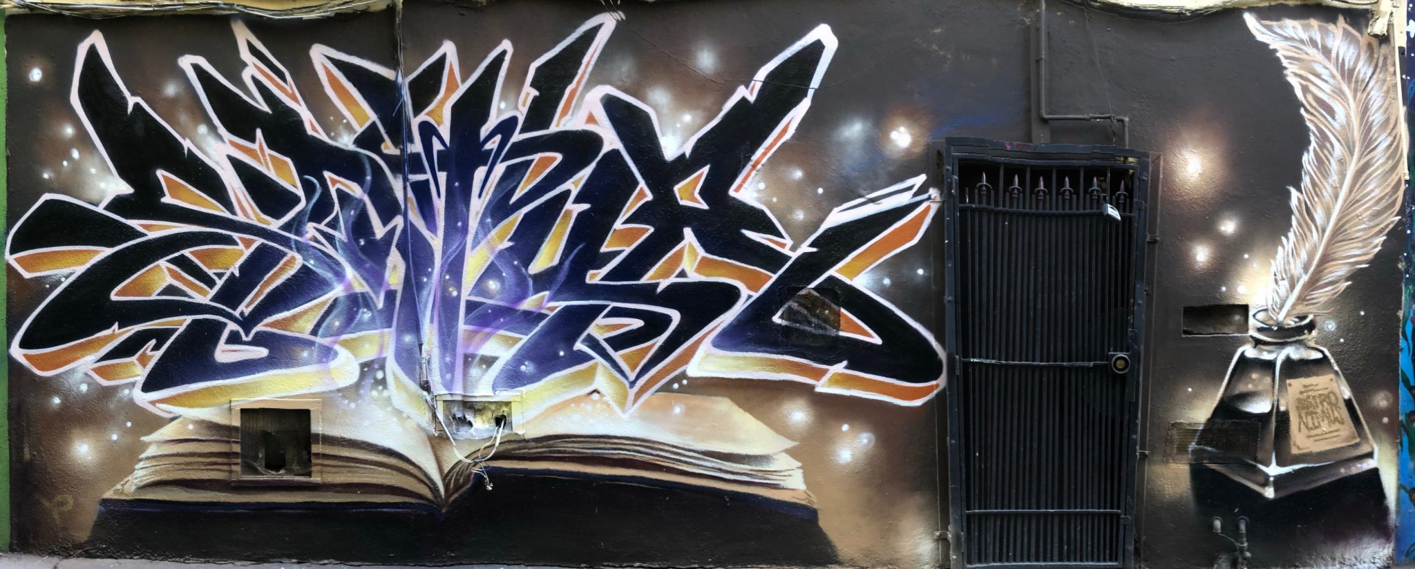 Painted alongside the infamous Jack Kerouac alley, this piece portrays the depth of literature. Inspired by the writer the alley was named after, Jack Kerouac was a beat generation writer who frequented the pub adjacent to the alley. Satyr describes the mural as showing how literature can create magic.