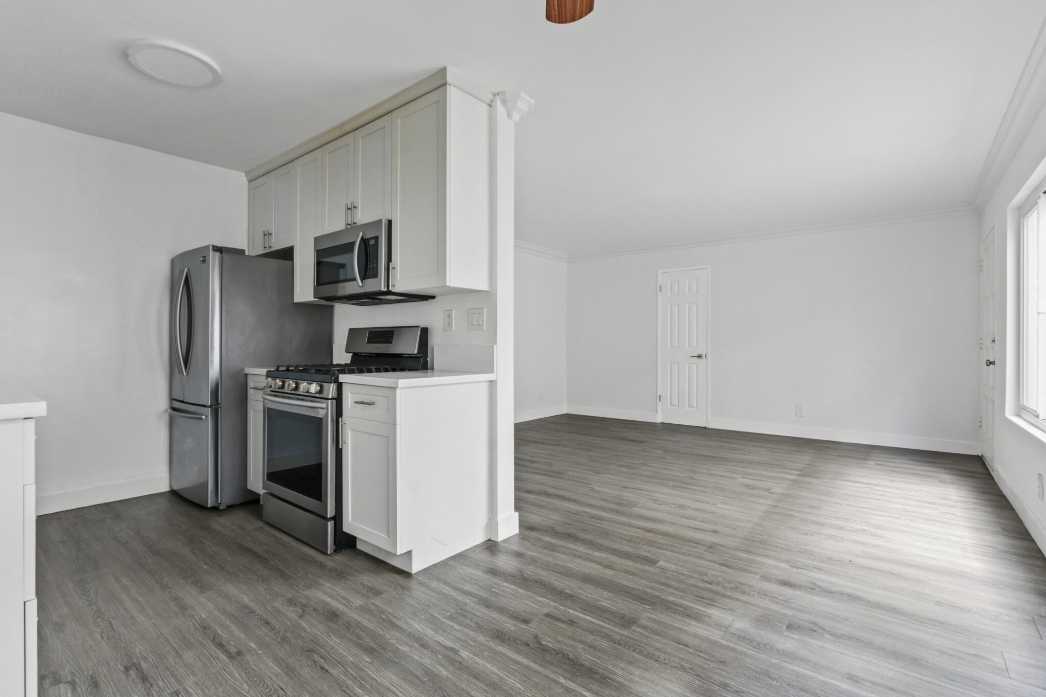 These two-bedroom, two-bath apartment homes feature beautifully updated kitchens with stainless steel appliances, gas stove and quartz countertops, ceiling fans, newly-remodeled bathrooms and a personal balcony. Plus, you’ll enjoy the ease of an intimate 10-apartment community, including on-site laundry facilities. Don’t miss out on this bright, recently renovated space!