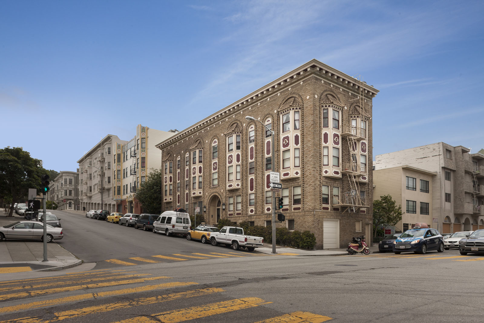 This handsome brick building has style and substance in spades. With hardwood floors, custom cabinetry and sleek appliances, the interiors grant your apartment wish-list. It’s just a few blocks from Alamo Square Park, so epic sunsets could be your evening routine.